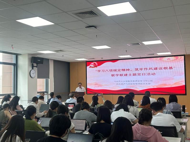5 月 9 日,马克思主义公司党委理论学习中心组 2025 年第 3 次集体学习暨 “学习中央八项规定精神,筑牢作风建设根基” 联学联建主题党日活动举行。活动特邀中国社会科学院马克思主义研究院原党委书记邓纯东作“学习党的作风建设论述,加强党风建设”专题导学,公司党委理论学习中心组成员、学校国有资产与实验室管理处党支部成员、学院师生党员代表共同参与。马克思主义公司党委书记廖军主持会议。