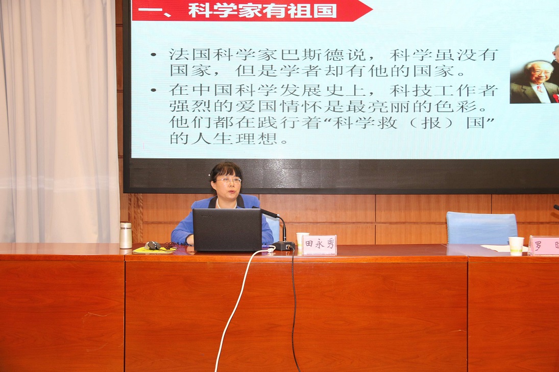 田永秀教授在报告中指出,在中国科学发展史上,科技工作者强烈的爱国情怀是最亮丽的色彩,如抵得上五个海军陆战师的钱学森、中国原子能科学事业的创始人、中国“两弹一星”元勋钱三强、中国近代“力学之父”、“应用数学之父”钱伟长,在祖国最需要他们的时候毅然回国,践行着“科学救(报)国”的人生理想。