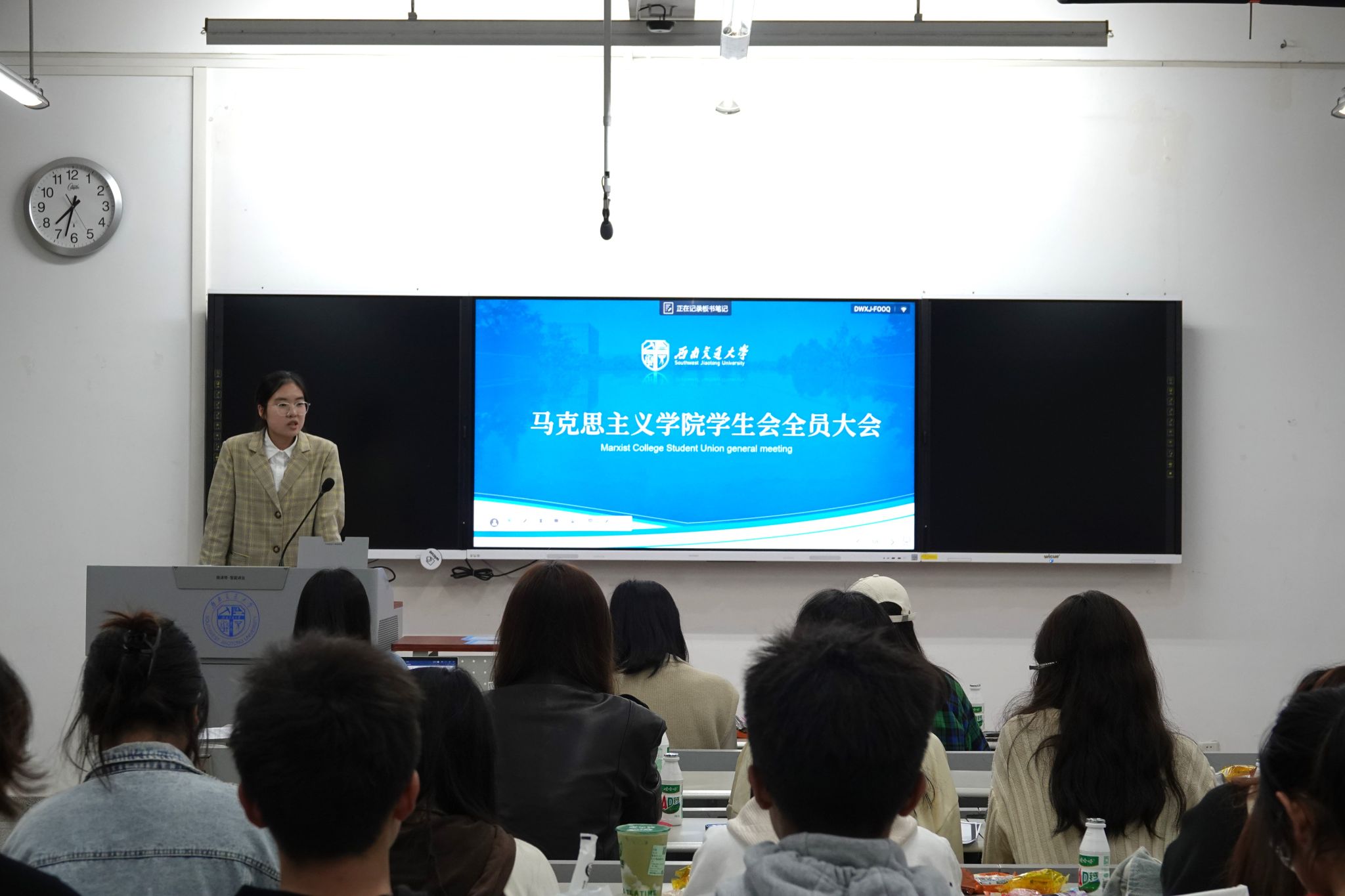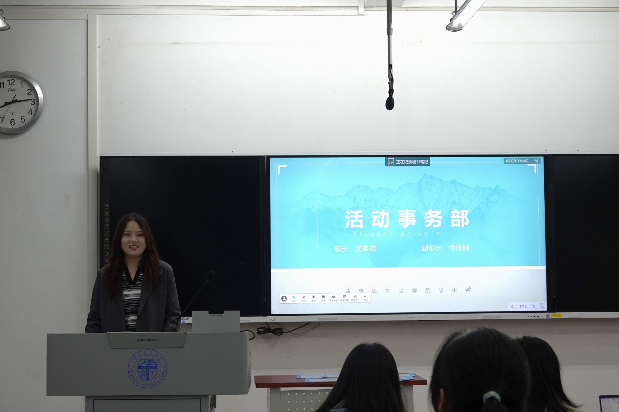首先,杜晓林老师为大会寄语。在对新成员表示欢迎后,杜老师以员工会的良好成绩勉励新成员奋发向上。杜老师指出,在日常学习生活中同学们的言行要符合一名马院人的要求,要不断提升自己的政治素养和道德素养,要在参与活动的过程中学会做人、学会做事,要正确处理好学习与工作的关系。此外,在心态上,杜老师叮嘱新成员要端正态度,认真踏实对待工作,积极主动融入集体,主动思考,及时反馈,注意自己形象与素质,充分发挥榜样示范引领作用,争做优秀的员工干部。