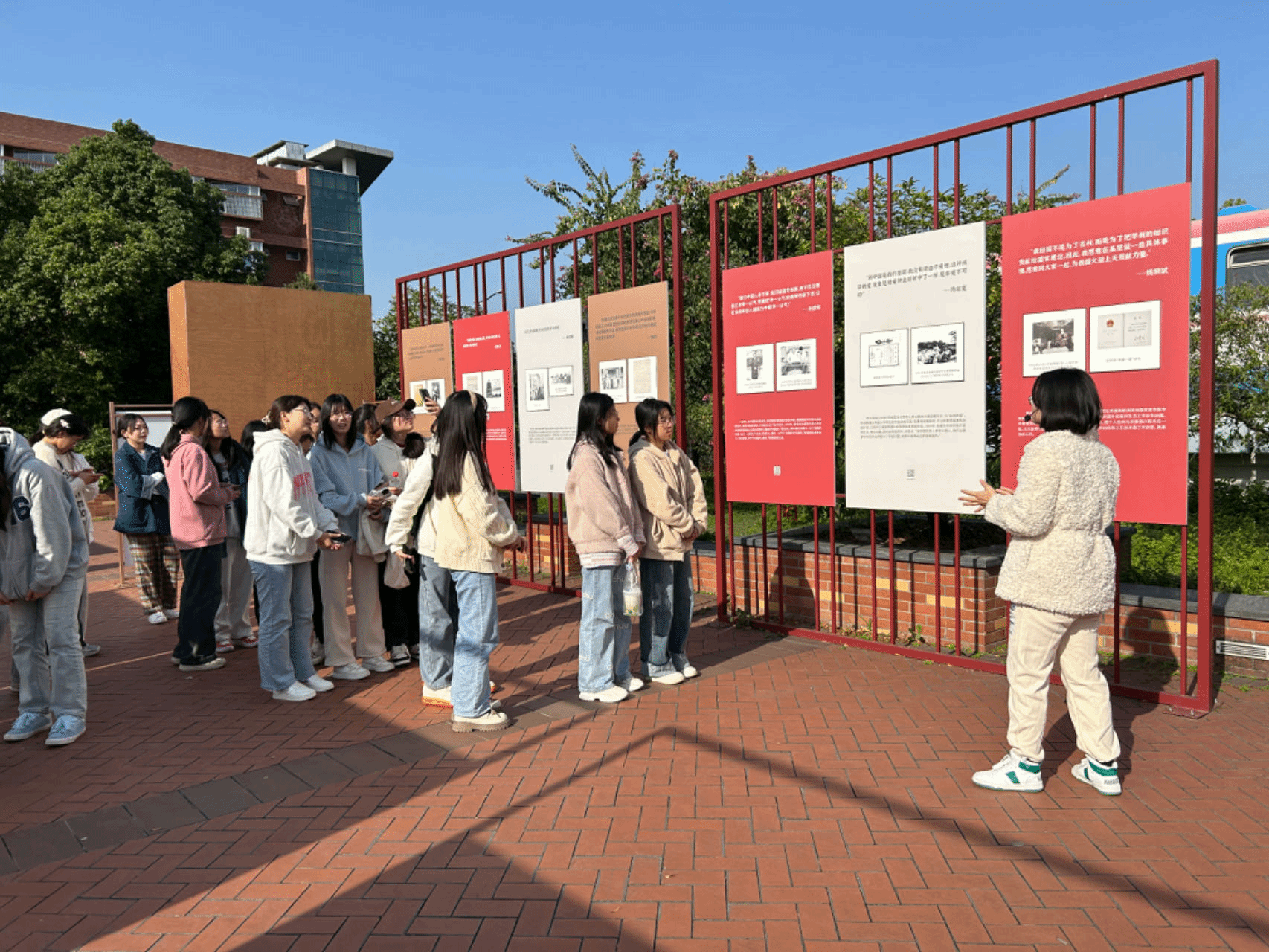 接着,同学们来到黄安基教授捐献文献纪念馆。在通亮的灯光下,黄教授的遗物规范陈列,展示着岁月的痕迹,闪烁着历史的光辉。在讲解老师详细、生动的讲解下,同学们一一观看黄教授的文献、工作笔记、会议记录、学业证书......时间仿佛被拉回到十九世纪,黄安基教授一丝不苟、追求上进、勤奋笃实的学者形象浮现在同学们的脑海。讲解老师表示,黄安基教授在学业与工作方面都严谨求实,他对中国力学发展做出的卓越贡献展现着交大人深沉热烈的爱国情,为交大精神的传承与弘扬谱写了新篇章。在讲解过程中,同学们主动向讲解老师询问更多关于黄教授一生的事迹,讲解老师耐心回答,师生互动积极而充满趣味。参观过程中同学们有感而发,纷纷在红色纪念卡片上留下自己的独特感言,无不抒发着对黄教授的敬仰之情。