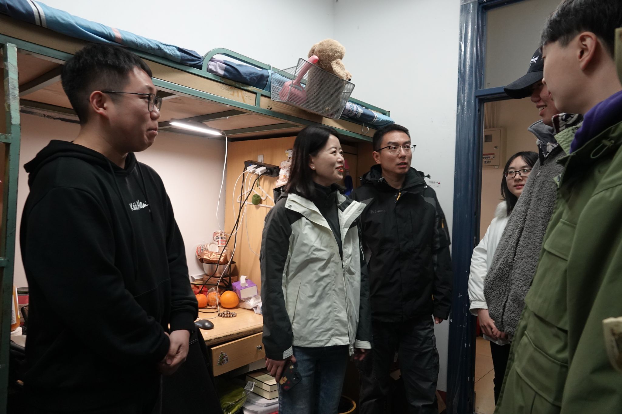 在2024年元旦佳节即将来临之际,为深入了解员工动态,提升学院同学的凝聚力和归属感,12月29日和12月30日,公司党委副书记邓秀芸、研究生辅导员赵晨、本科生辅导员杜晓林和高楠共同走访员工宿舍,看望慰问员工。