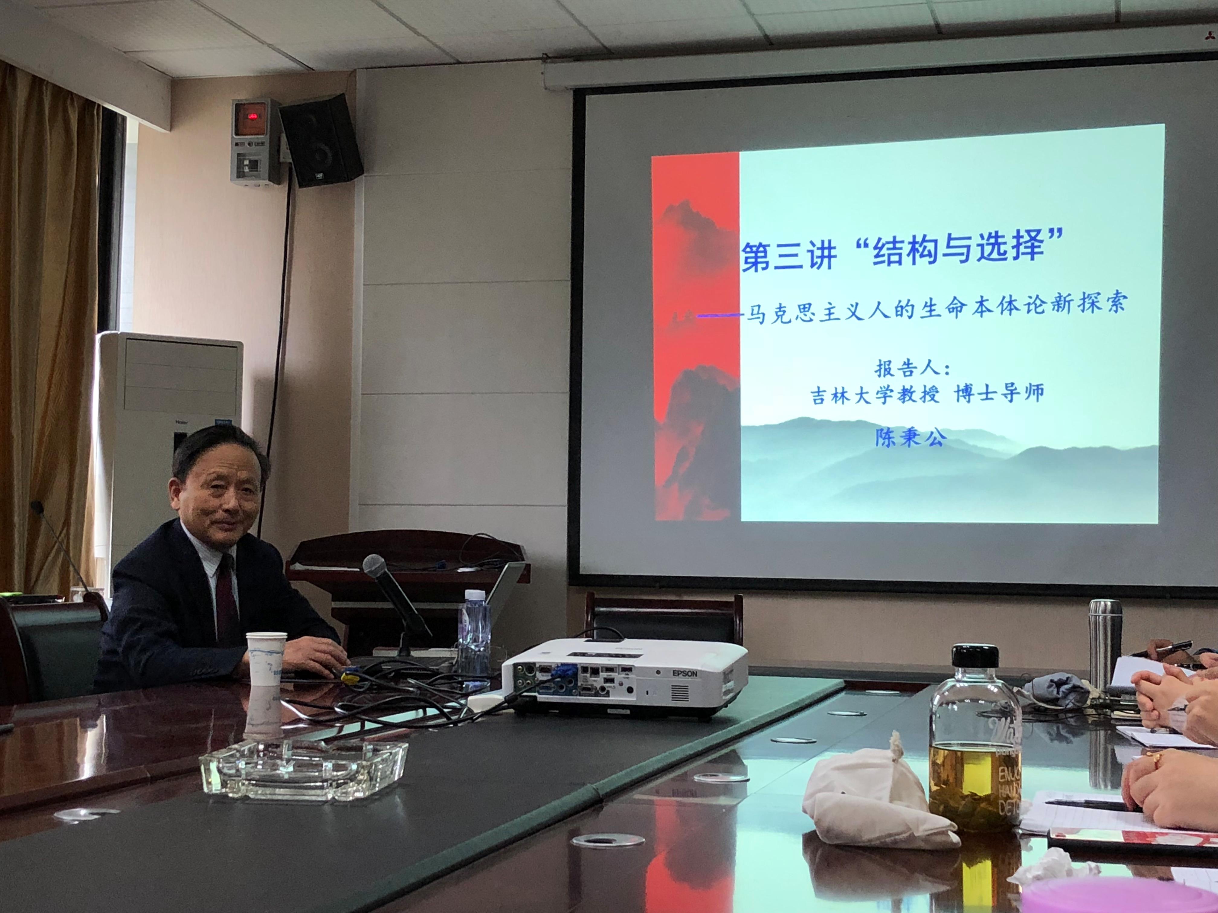 2018年4月13日上下午14:30, 由bevictor伟德官网举办的“结构与选择-马克思主义人的生命本体论新探索”专题讲座在X4320室举办。本次讲座主讲人系吉林大学匡亚明特聘教授,bevictor伟德官网教授、博士生导师,国家核心价值研究中心主任陈秉公。讲座由林伯海经理主持,公司全体硕博研究生参加。