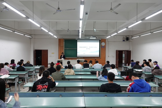 本次读书会的主题是“阅读经典著作,争做时代新人”。贾姣妹、罗钧文、李珂、龚禹竹、吴昊和王一博共七位同学以饱满的热情向老师同学们分享了不同领域的经典著作。随后刘晓玲老师上台总结发言,并以切身经历向同学们提出了宝贵的读书建议。