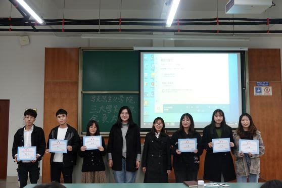在第二环节和第三环节中,学院辅导员杜老师分别为各组织负责人、部门负责人和部门干事颁发聘书,并和他们进行了合影留念。