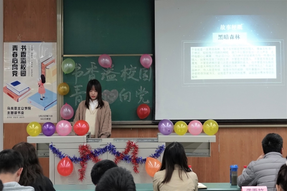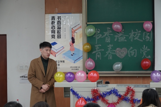 3月25日19时,公司在X4155教室举办了以“书香溢校园,青春心向党”为主题的读书交流活动,并邀请了2020级班导师熊昊老师和本科生辅导员杜晓林老师作为点评嘉宾。本次读书会上,参与同学们向观众介绍了自己喜欢的书籍,讲述了作品创作的历史背景、相关内容以及自己的阅读心得。