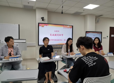 最后,数学学院团委副书记周义杰主持进行提问交流环节。优秀员工干部罗乔美、龚禹竹、张佳豪、安静泽先后对“如何平衡学习与员工工作”“如何调动同学们的积极性”“如何提高‘青年大学习’的参与度”“对员工干部的三个要求”等问题进行了详细回答。