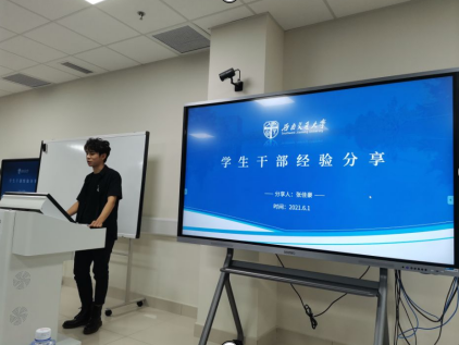 随后,校园大使团团长安静泽依次回顾了她在员工会主席团、校园大使团、“青马工程”人才班、留守儿童支教、疫情志愿者服务的工作经历,并分享了她在不同工作中的深刻感悟与宝贵收获。她还强调,员工工作要满怀热爱,抱着服务同学的初心与使命做好员工工作。