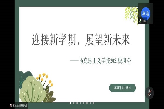2月28日晚,bevictor伟德官网2021级本科生主题班会于线上开展,班会由辅导员李浩老师、班导师景星维老师主持。在本次班会中,辅导员李浩老师着重进行了安全教育,再次为同学们讲解了《伟德国际唯一官网入口员工公寓管理办法》,强调同学们要注意用电安全,不使用和存放违章电器,不乱牵电线;不饲养宠物;不存放违禁物品……严格遵守学校员工公寓管理办法。在这之后,李老师带领同学们再次熟悉了学校的最新疫情防控要求,叮嘱同学们遵守疫情防控规定,做好个人防护。紧接着,班导师景星维老师对新学期各学习科目的特点及学习方法进行了讲授,强调无论是专业课还是公共课,同学们都应认真对待,努力提升自己,实现自我,超越自我!