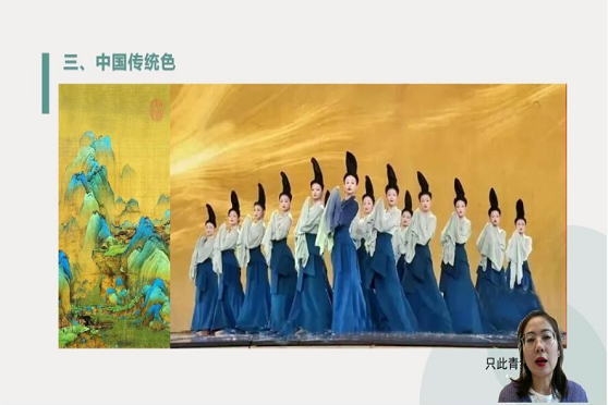 讲座伊始,孔老师以一段关于中国传统色彩的视频引入,为同学们详细讲解了中国传统色彩的含义、寓意、历史、分类、环境与色彩的关系以及色彩在现代设计和生活中的运用等等,其重点突出将中国古色和现代技术相结合,以视觉奇观呈现传统文化之美。随后,孔老师结合社会热点分享了中国传统色彩的独特魅力和悠然韵味。