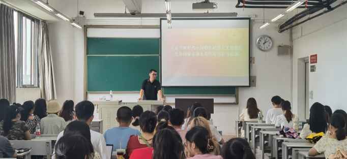 杨伟宾副教授以“习近平新时代中国特色社会主义思想是党和国家必须长期坚持的指导思想”为题,从习近平新时代中国特色社会主义思想的形成背景、主要内容、鲜明特征和重要价值四个方面,系统全面、深入浅出地向全体党员进行了讲解导读。特别强调,习近平新时代中国特色社会主义思想作为马克思主义中国化的最新理论成果,深深根植于新时代中国特色社会主义的伟大实践,具有广阔的时代背景、深厚的理论渊源和坚实的实践基础,是当代中国马克思主义、21世纪马克思主义,所有党员必须深入学习、深刻领悟、生动实践。