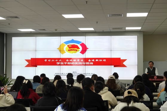 最后,廖凡老师从自身实践和同学们交流了个人体会。廖老师告诉同学们:要会读书也要能行路,注重理论联系实际;要不计个人得失,有奉献不求回报的觉悟;要在担任员工干部的过程中收获幸福和成长。