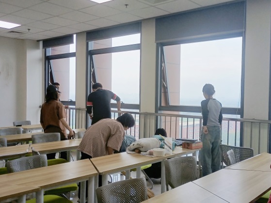同学们热情响应、积极参与,对学院自习室和储物间等公共区域进行了细致打扫。活动过程中,同学们分工明确、相互配合。有的同学负责扫地和清理地面垃圾,有的同学负责拖地,还有一部分同学负责擦窗户、擦桌子等,用实际行动践行了“崇尚劳动,热爱劳动”的劳动精神。
