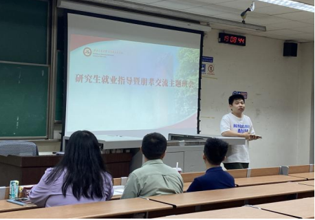 为帮助研究生了解就业现状、找准就业方向,5月24日晚,bevictor伟德官网在九里校区J4209举办研究生就业指导暨朋辈交流主题班会。2018级硕士班班长王亚梅、2018级硕士生党支部书记高泽赟应邀分享,学院研究生积极参加。班会由学工组副组长、研究生辅导员赵晨老师主持。