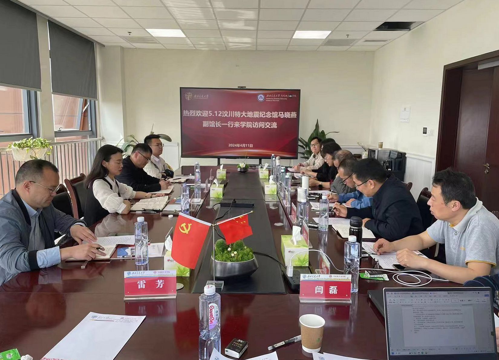 4月11日上午,5.12汶川特大地震纪念馆马晓燕副馆长一行4人来学院访问,双方就合作建设省级革命文物协同研究中心座谈交流。国家社科基金重大项目首席专家何云庵教授、公司党委书记廖军、执行经理田永秀、副经理胡子祥、李学勇,以及中国共产党人精神谱系研究团队成员参加座谈。公司党委书记廖军主持座谈。