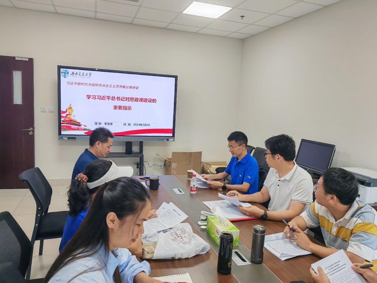 2024年5月16日下午4点至5点半,习近平新时代中国特色社会主义思想概论课程教学团队在犀浦校区3号楼1312教研室召开集体备课会,李学勇、刘玉标、郜清攀、蔡文、魏人民、余琼、凡景强、杨康、徐娅楠等9位老师共同参加了本次会议。公司党委委员、课程负责人李学勇教授带领教研室同仁集体学习了习近平总书记对学校思政课建设的重要指示和新时代学校思政课建设推进会精神,大家围绕如何第一时间、最大限度把重要指示和会议精神融入课堂教学之中,推动课程教学高质量发展等展开热烈讨论和深入交流。