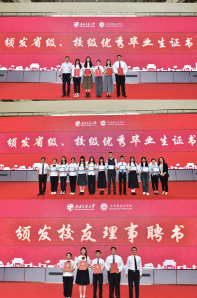 在庄重而热烈的氛围中,胡子祥副经理、李学勇副经理、谢瑜副经理为荣获省级优秀毕业生和校级优秀毕业生的同学颁发证书。杨伟宾副主任为2024届员工理事颁发了聘书。