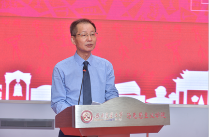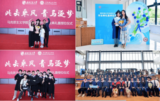 在热烈的掌声中,邱海平发表了致辞。他对2024届毕业生表达了热烈的祝贺;他希望毕业生们能够心怀感恩之心,感恩家人、父母、朋友以及感谢自己的付出和努力。同时,他希望毕业生能回顾学习经历,找到前进的着力点。他指出,“马院姓马,马院的员工当然也姓马”,毕业生们不仅要懂得马克思主义,而且要信仰马克思主义、践行马克思主义。他希望毕业生在未来都能继续潜心学习马克思主义,用科学理论分析一切问题、用正确方法解决一切问题。