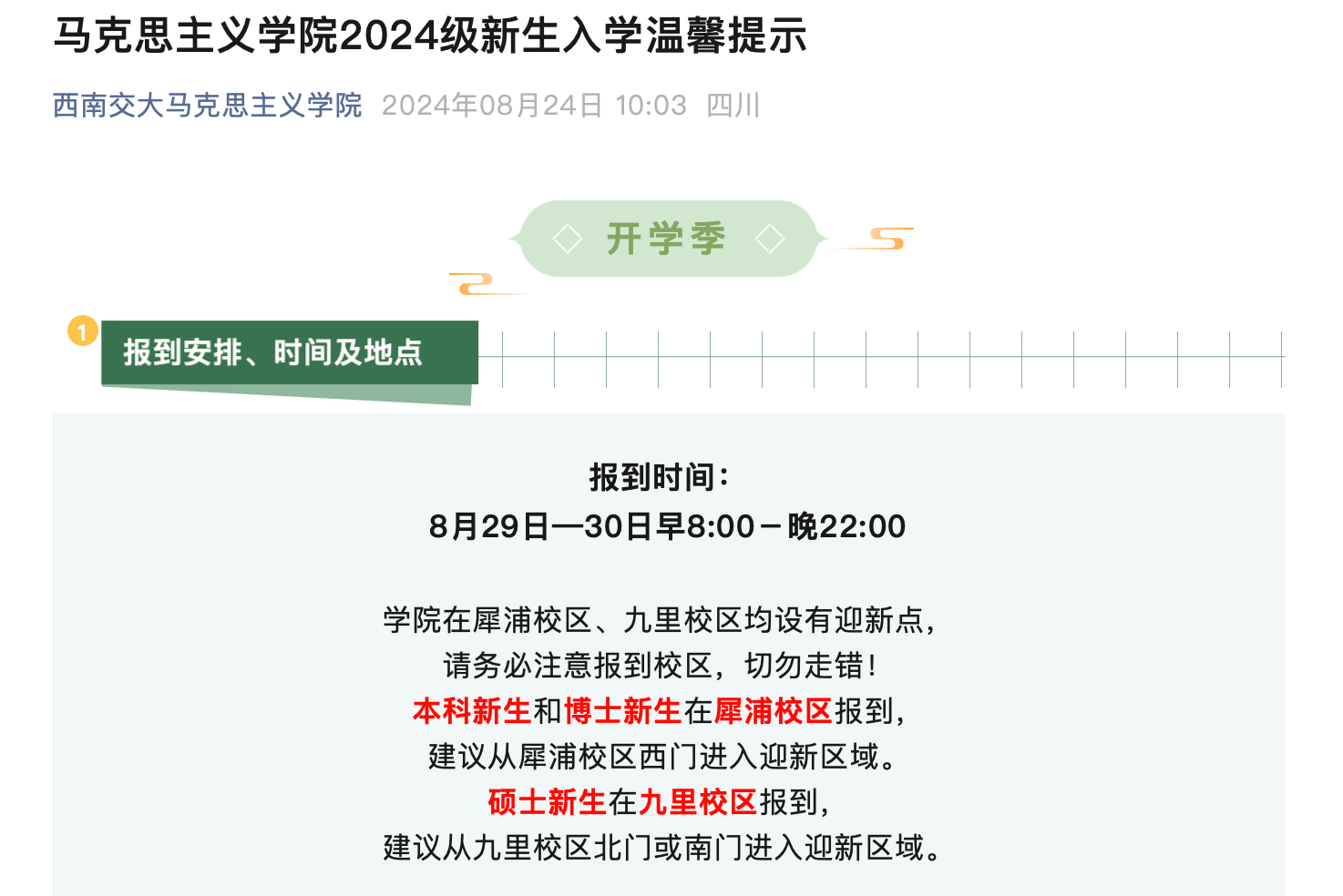 2024年8月24日学院在公众号上发布了新生入学温馨提示,为新踏入校园的员工们提供一份贴心、全面的指引,帮助他们更快地适应新环境,融入老员工活。这份提示涵盖了报到流程、安全提示以及校园生活的基本信息。