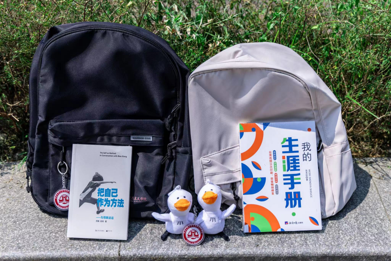 为了表达学院对新生的热烈欢迎与深切关怀,学院分别为本研新生准备了书籍《我的生涯手册》和《把自己作为方法》,邀请同学们在开学后共同阅读,并准备了院徽挂坠、定制书包以及“加油鸭”,助力生涯启蒙和员工成长。