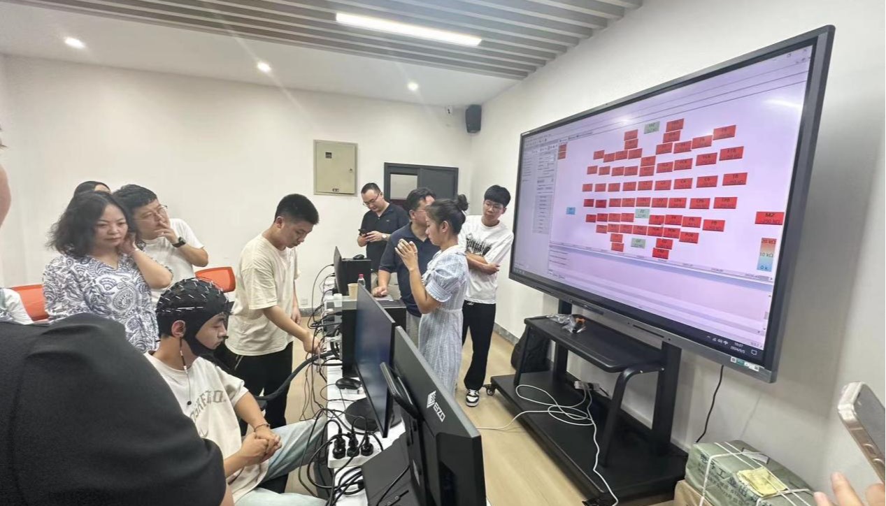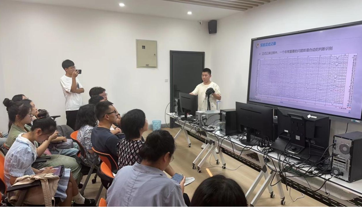 在上午的工作坊中,公司师生对Neuroscan 64-256导脑电采集系统的工作原理、使用方法进行了探索。在工作坊中,师生系统学习了脑电信号的采集以及数据处理的相关流程,掌握了通过仪器快速采集并分析脑电信号,并进行对可视化处理的方法。在实验阶段,师生对被试人员大脑活动状态,以及不同刺激下被试人员的接收反应进行了测试。