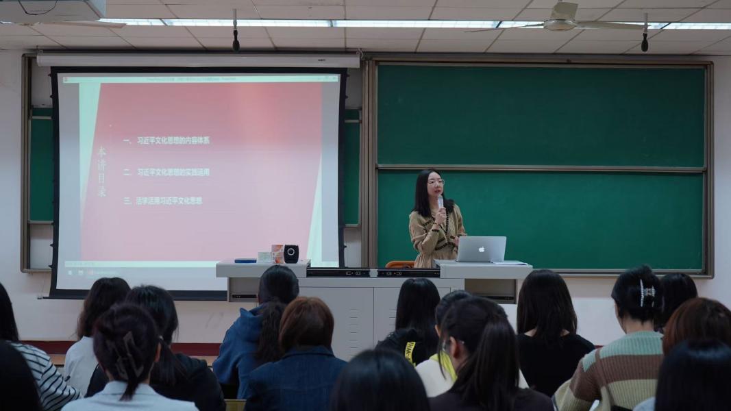 第二版块“习近平文化思想的实践运用”由方玲教授主讲。方玲结合自己在不同岗位履职的丰富经验,从生活小事、工作小节出发,用大量案例生动讲述了习近平文化思想的具体表现和运用方法,耐心解答了几位同学的思想困惑,有效增进了同学们对习近平文化思想的理解。方玲强调,积极向党组织靠拢、争取早日入党和坚持党的领导是青年员工应有的追求和信仰,因为真理的味道很甜,能够引领我们走向光明的未来;要坚守意识形态红线,谨防落入各种陷阱;还要有意识培养大局观、发展观、智慧观,脚踏实地做好本职工作,不断磨炼个人意志。