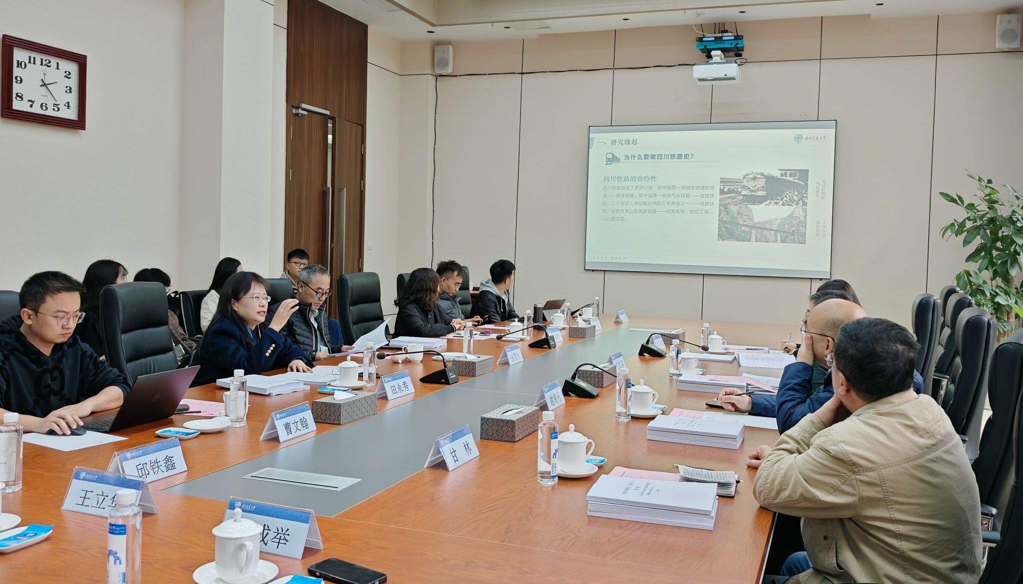 11月22日下午,由公司田永秀教授主持的四川省哲学社会科学基金重大项目研究成果,即《四川铁路史(三卷本)》专家咨询会在公司学术交流服务中心召开。四川省地方志办党组成员、副主任江红英,中共四川省委党史研究室党史三处处长、一级调研员谢海彬,四川省地方志办省志工作处处长牛淼,《人民铁道》报驻成都记者站原首席记者甘林等四川省党史、地方史研究专家莅临指导。公司铁路与国家现代化研究中心全体成员出席会议。会议由伟德国际唯一官网入口文科学部主任张雪永教授主持。