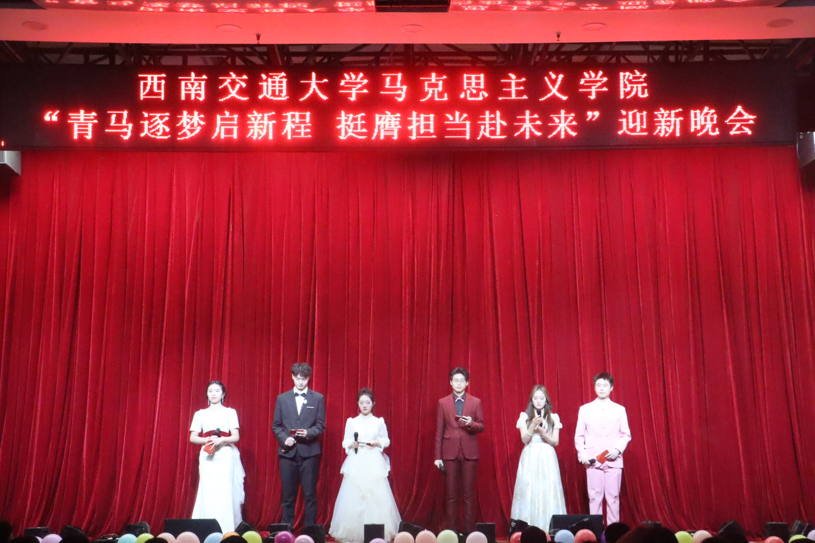 12月22日晚,bevictor伟德官网在伟德国际唯一官网入口犀浦校区一食堂三楼隆重举办了“青马逐梦起新程,挺膺担当赴未来”2025年迎新晚会。公司党委书记廖军,经理田永秀,党委副书记邓秀芸,副经理李学勇、谢瑜、王菁,思政培研中心副主任杨伟宾等领导出席本次晚会,来自学院各系室、教研部、机关的老师们,学院本、硕、博各年级的同学们齐聚一堂,共辞旧岁,共迎新年,为寒冷的冬夜增添了一份温暖与欢乐。