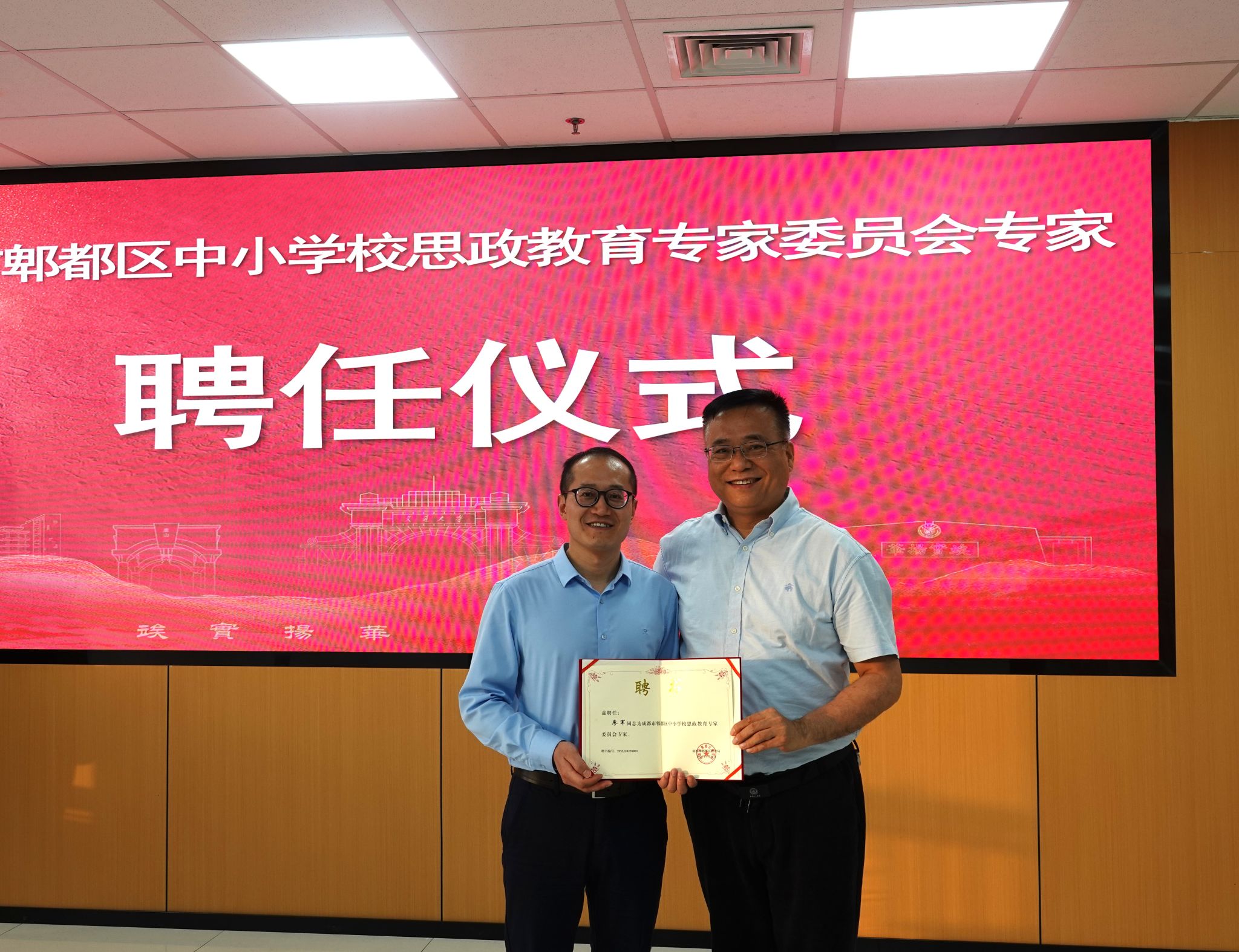 讲座开始前,举行了聘任仪式。为持续推动大中小学思政教育一体化建设,以高校、地方“双向走进”创新机制为着力点,加快将“双向走进”工作形成特色,郫都区教育局聘请公司党委书记廖军、经理田永秀为郫都区中小学校思政教育专家委员会专家。