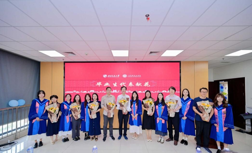 王菁和谢瑜分别宣读了授位决定。导师们逐一为毕业生们拨穗正冠、举行授位仪式。典礼最后,全体师生齐唱校歌,唱响了对学院的热爱和对未来的美好期许,共同见证了这个充满感动和意义的毕业典礼。