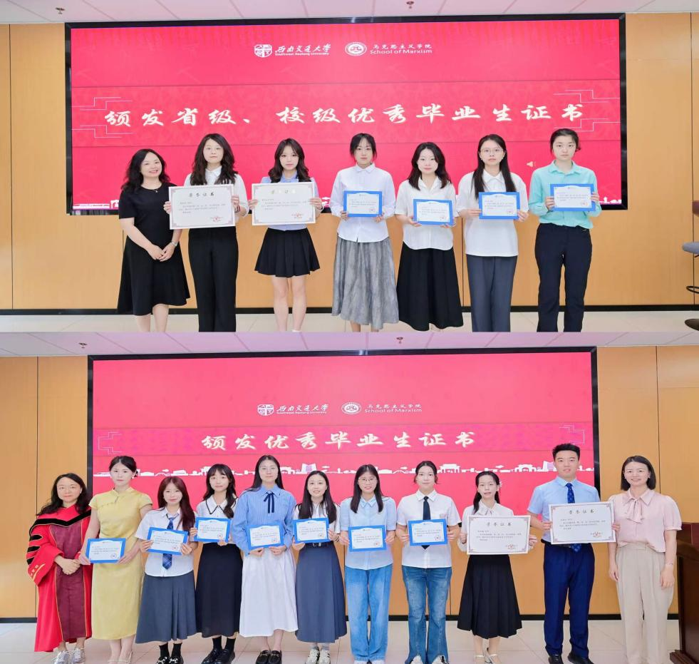 在庄重而热烈的氛围中,副经理谢瑜为省级、校级优秀本科毕业生颁发荣誉证书;党委副书记邓秀芸、副经理王菁为省级、校级优秀研究生毕业生颁发荣誉证书。