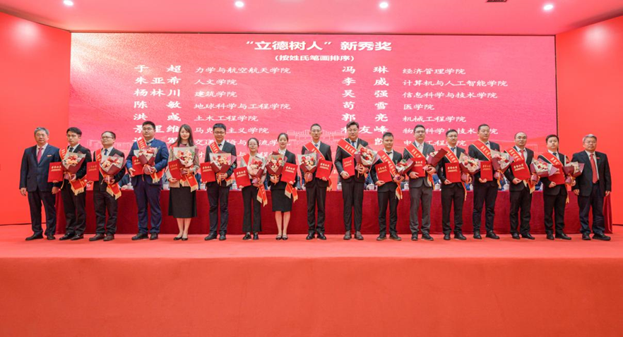 9月10日,为表彰在教书育人等各方面取得突出成绩的先进集体和优秀个人,展现新时代广大教师深入践行“教育家精神”,认真落实立德树人根本任务的良好精神风貌,学校召开了2025年教师节庆祝大会。学院研究生思政课教学团队荣获“‘立德树人’先进集体”称号、李学勇老师荣获 “‘立德树人’标兵奖”称号、景星维老师荣获“‘立德树人’新秀奖”称号、胡子祥老师被授予“思国奖”。庆祝大会上,胡子祥作为“思国奖”获奖教师代表发言。他谈到,作为土生土长的交大人,深感师恩、团队和组织培育之恩,未来定将这份“交大之爱”传递给员工,让思政课有温度、育人有力量。