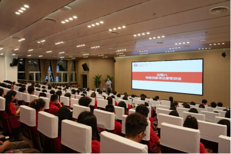 公司党委书记廖军向149名新生致欢迎词,提出深耕马列经典,筑牢信仰根基;积极实践,提升解决问题能力;言行合一,展现马院学子风范三点期望。