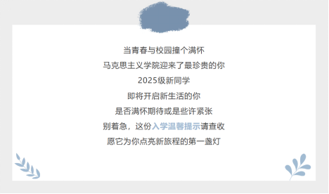 迎新筹备阶段,学院以贴心服务、精准保障为准则,多维度夯实新生入学基础。9月2日,学院通过官方公众号发布新生入学温馨提示,涵盖报到流程、校园安全及生活指南等重要信息,为新生顺利融入校园提供清晰指引。同时,学院精心准备迎新礼包,定制帆布包、笔记本和中性笔,将学术精神与人文关怀融于实用器物之中。