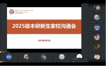 9月1日,学院学工组召开线上家校沟通会,搭建家校协同育人桥梁。党委副书记邓秀芸详细介绍了学院员工工作理念与发展规划,提出了凝聚家校共育合力的倡议。研究生新生辅导员赵晨、杜晓林,本科生新生辅导员敬宇,分别就2025级新生概况、老员工活规划及辅导员工作职责进行说明,朋辈导师也分享了学习与生活经验。