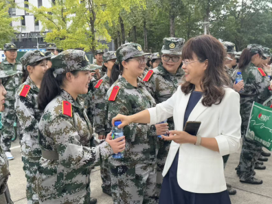 为深入了解军训进展与学子状态,传递学院深切关怀,9月18日,学院于军训现场开展专项慰问活动。学院经理田永秀、党委副书记邓秀芸、辅导员敬宇以及2025级朋辈导师王照涵、郭钰艺参与了本次慰问活动,为全体新生送上清凉解暑物资,将关怀与问候融入实际行动。