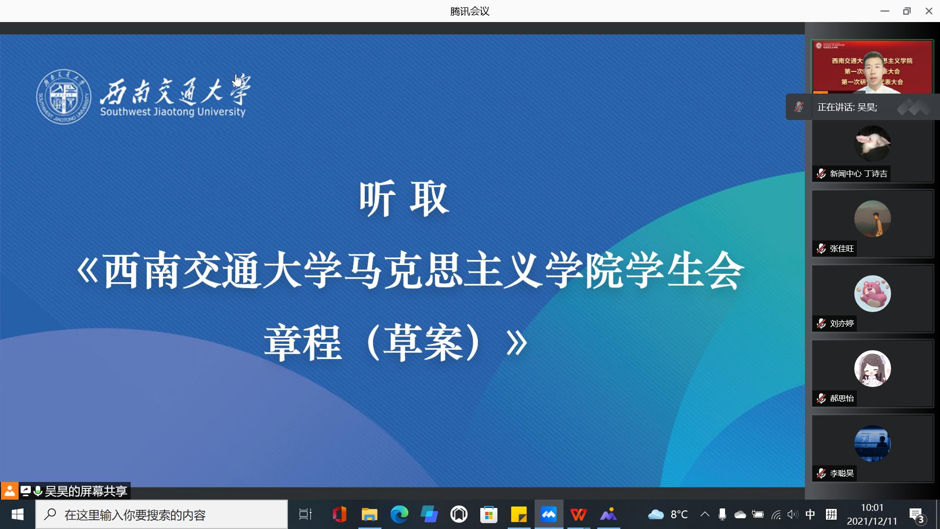 在中国共产党成立100周年的历史关头,在bevictor伟德官网全院师生深入学习贯彻党的十九届六中全会精神之际,按照《中共伟德国际唯一官网入口委员会关于推进员工会(研究生会)深化改革的实施方案》要求,经公司党委和校员工会、校研究生会审批,bevictor伟德官网于2021年12月11日召开了学院第一次员工代表大会、第一次研究生代表大会。为积极配合学校疫情防控工作,本次大会通过腾讯会议线上举行。本次大会应到本科员工代表24人,实到24人;应到研究生代表20人,实到20人。公司党委副书记熊钰、院团委书记赵晨、院团委副书记杜晓林、李浩,校员工会主席团成员王晓婷、校研究生会主席团成员冷书恒,以及部分兄弟学院员工会主席、研究生会主席出席大会开幕式。