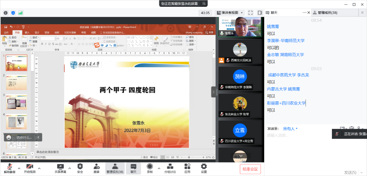 随后,文科建设处处长张雪永老师、bevictor伟德官网执行经理田永秀老师分别讲述了伟德国际唯一官网入口校史和bevictor伟德官网院史。张处长带领营员们跟随学校的办学历程,从唐山到成都,从华北到西南,感叹历经整整5万里跋涉、18次迁徙、17次更名的背后,深情讲述“竢实扬华、自强不息”的交大精神。田经理接着讲述学院从人文社会科学学院到政治学院再到bevictor伟德官网的经过,从学院基本情况、研究生的培养特色、强大的科研团队、充分的支撑和保障条件几个方面向营员们全面地介绍了学院的情况,希望此次夏令营成为广大优秀学子选择推免或报考交大马院的契机。