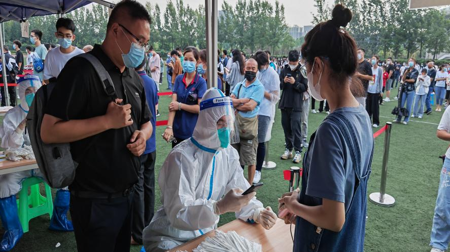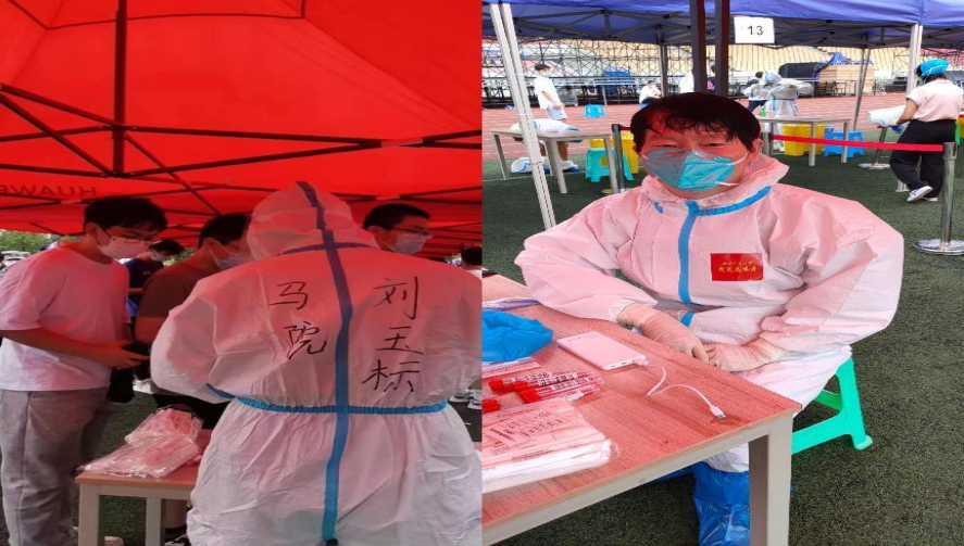 在学校核酸检测点,bevictor伟德官网教师党员志愿者刘玉标、杨桓、门满洲老师迅速变身“大白”,配合学校做好核酸检测工作事宜。秋已至,夏未央,初秋的午后,依旧炎热,面对激增的检测人数和紧迫的检测时间,他们没有丝毫退缩,坚守工作岗位,耐心细致参与核酸检测扫码、贴试管码、答疑解惑、维持核酸检测秩序等工作。9月2日的志愿服务从上午开始,一直到微凉的深夜,即使在核酸网络系统暂停期间,学院教师党员志愿者们仍身穿防护服随时待命,他们与学校工作人员、医务人员并肩作战,用大爱筑起阻击疫情的防线。