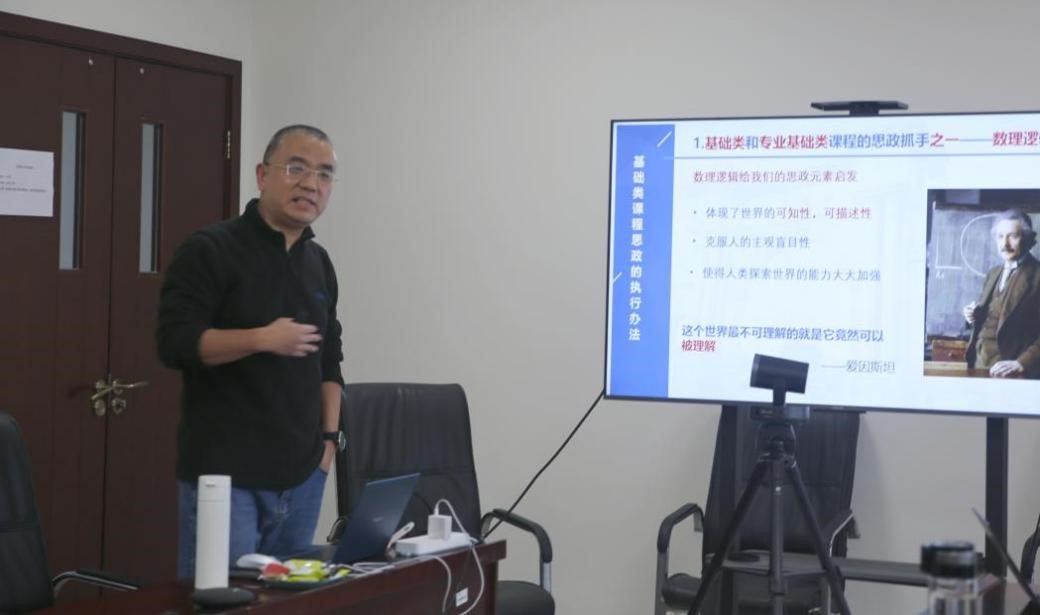 然后,何莎分享了高等数学课程融入课程思政内涵的探索实践经验。她首先分享了建立课程思政资源库的三方面成果:《高等数学》课程思政元素汇总表、教学设计案例库、教学全视频和微课视频。紧接着她总结了线下课程教学、线上线下混合教学、考试与人的课程思政的三种实施途径,并分享了在课程思政实施过程中员工带给老师们的“小惊喜”,提出了在这三种实施途径中的一些注意事项。最后,她对未来开展课程思政的几方面工作作出了展望,指出:要把马克思主义立场观点方法的教育与科学精神的培养结合起来,培养员工探索未知、追求真理、勇攀高峰的责任感和使命感。
