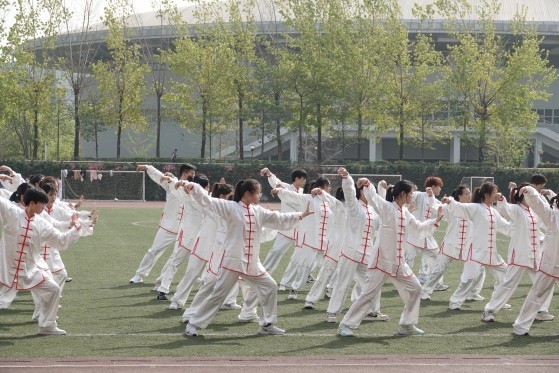 在第四届太极比赛和太极展演中,公司同学高质量完成了此次比赛,取得了二等奖的优异成绩。同学们身穿白色太极服,跟随伴奏缓缓抬手,刚柔并济、专注认真,动作整齐划一,展现了马院学子良好的体育精神和强烈的集体荣誉感。
