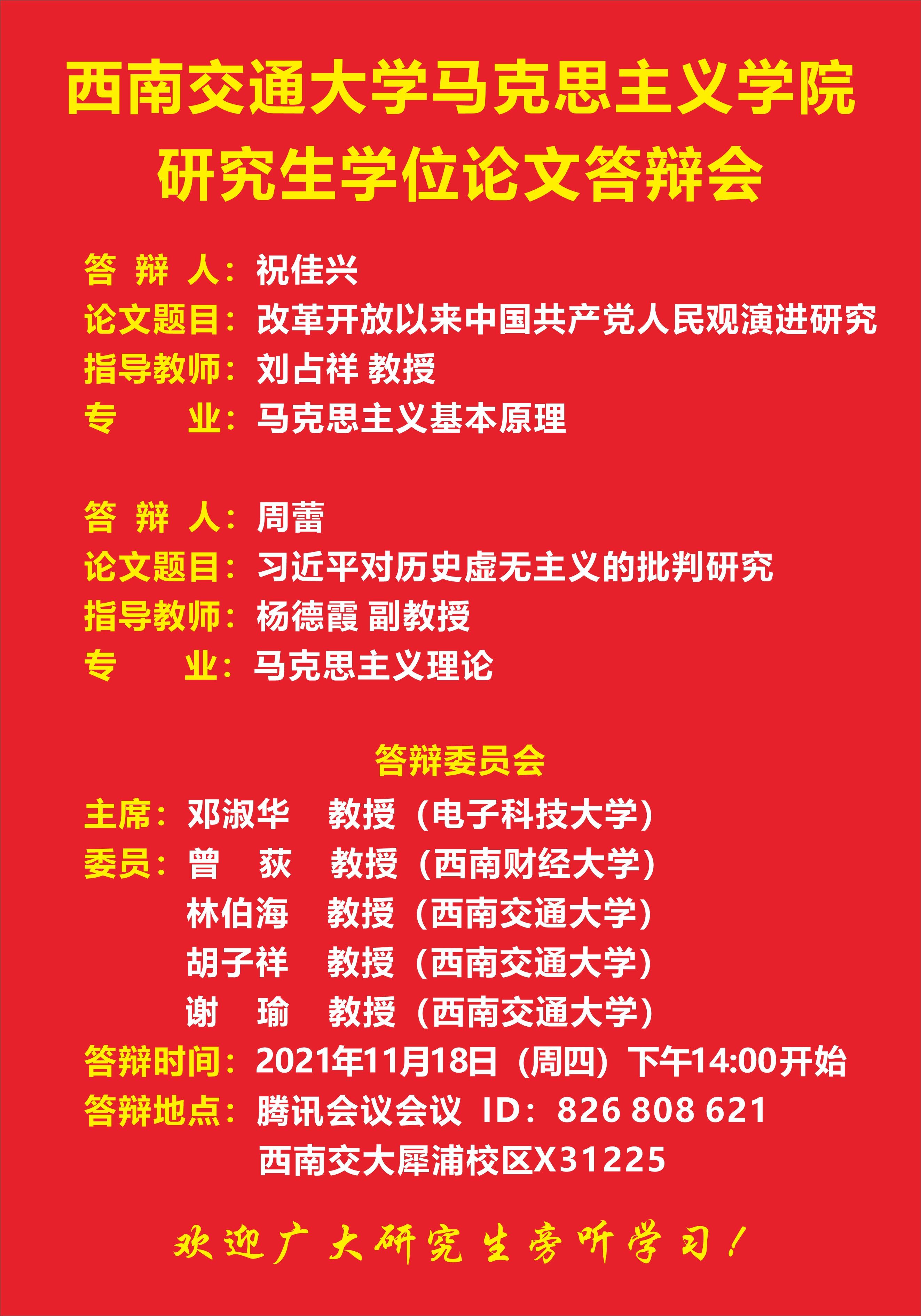 【研究生】2021年11月研究生学位论文答辩会