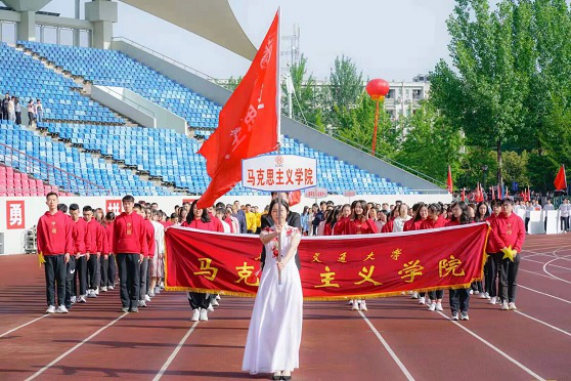 After the entrance ceremony, all rose to sing the national anthem, facing the national flag. Immediately afterward, President Yang Dan delivered an opening speech. He emphasized that the athletes should adhere to the principle of Friendship is Superior to Competition and strive for excellent grades. After the athlete representatives and referee representatives took the oath, Secretary Wang Shunhong announced the official start of the 121st Southwest Jiaotong University Games, and the audience burst into enthusiastic cheers. As the Games officially kicked off, the athletes of the School of Marxism presented outstanding performances. In the individual competitions, they struggled on the red track and swayed sweat on the green field, embodying the competitive spirit to the fullest. In the team competitions, they worked together and united as one, showing the cooperation spirit of the School of Marxism.