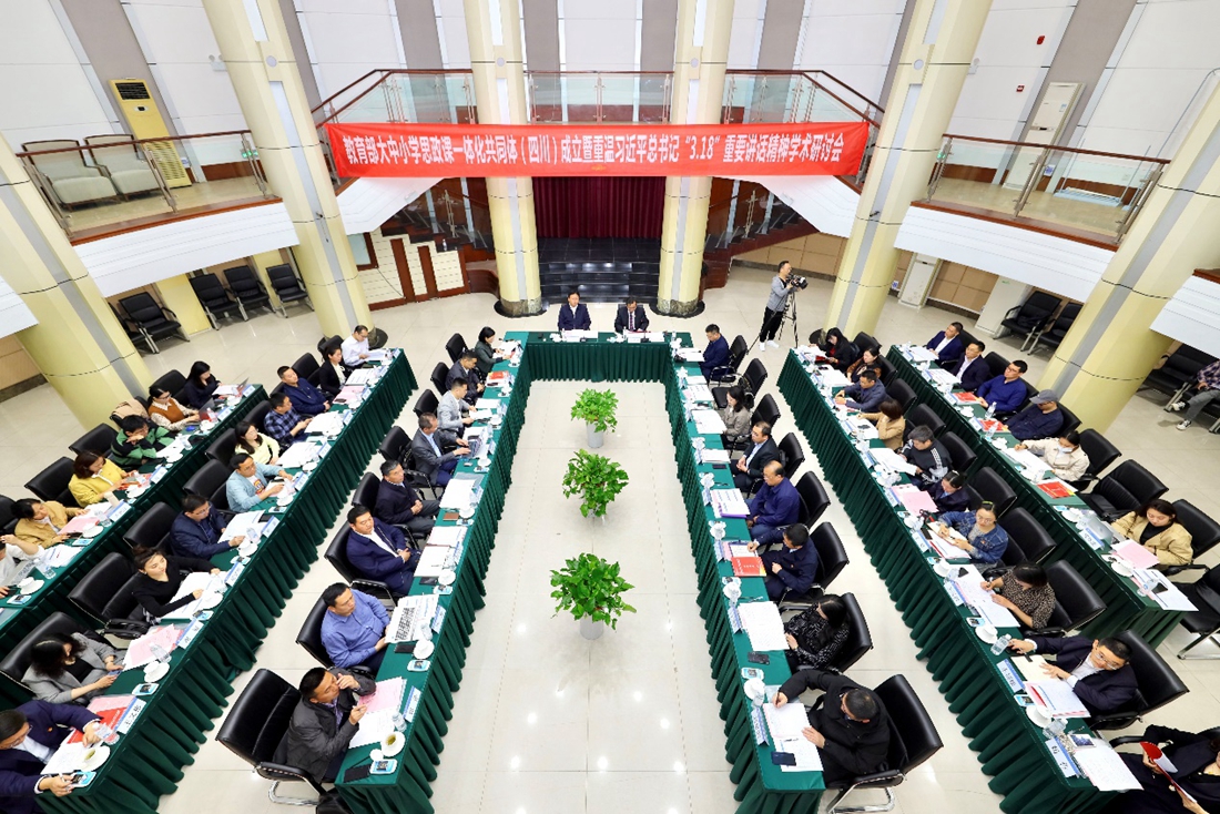 成立仪式上,四川师范大学马克思主义公司党委书记王泽兵、成都七中八一学校董事长助理杨勇、马尔康第四小学校董事长三郎斯基、成都市金牛区教育局副局长谭霞作为成员单位代表发言,一致表示将结合本校特色优势,积极参与共同体建设,努力为大中小学思政课一体化建设提供“四川经验”。