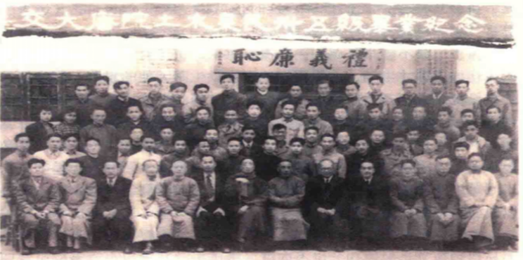 交大唐院土木系民三五级毕业纪念。第一排左五为黄寿恒,左七至十一依次为李斐英、罗忠忱、伍镜湖、顾宜孙、李汶。