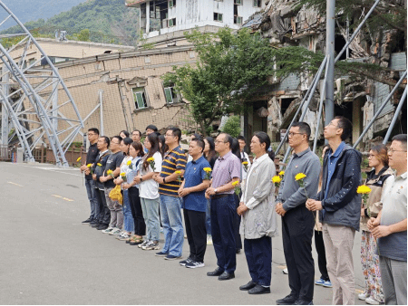 6月7日上午,学院师生代表来到了北川老县城地震遗址。北川老县城地震遗址是目前世界上保留的规模最大,最为完整的地震灾难遗址。这里不仅是罹难同胞的纪念地,还是汶川特大地震抗震救灾的主战场,中华儿女在这里谱写了一曲曲可歌可泣的英雄篇章,孕育形成了伟大的抗震救灾精神。师生们缓步走入,一边倾听讲解员的讲述,一边驻足观望。在公司党委书记廖军的带领下,师生们在此开展了简短而庄重的献花仪式。