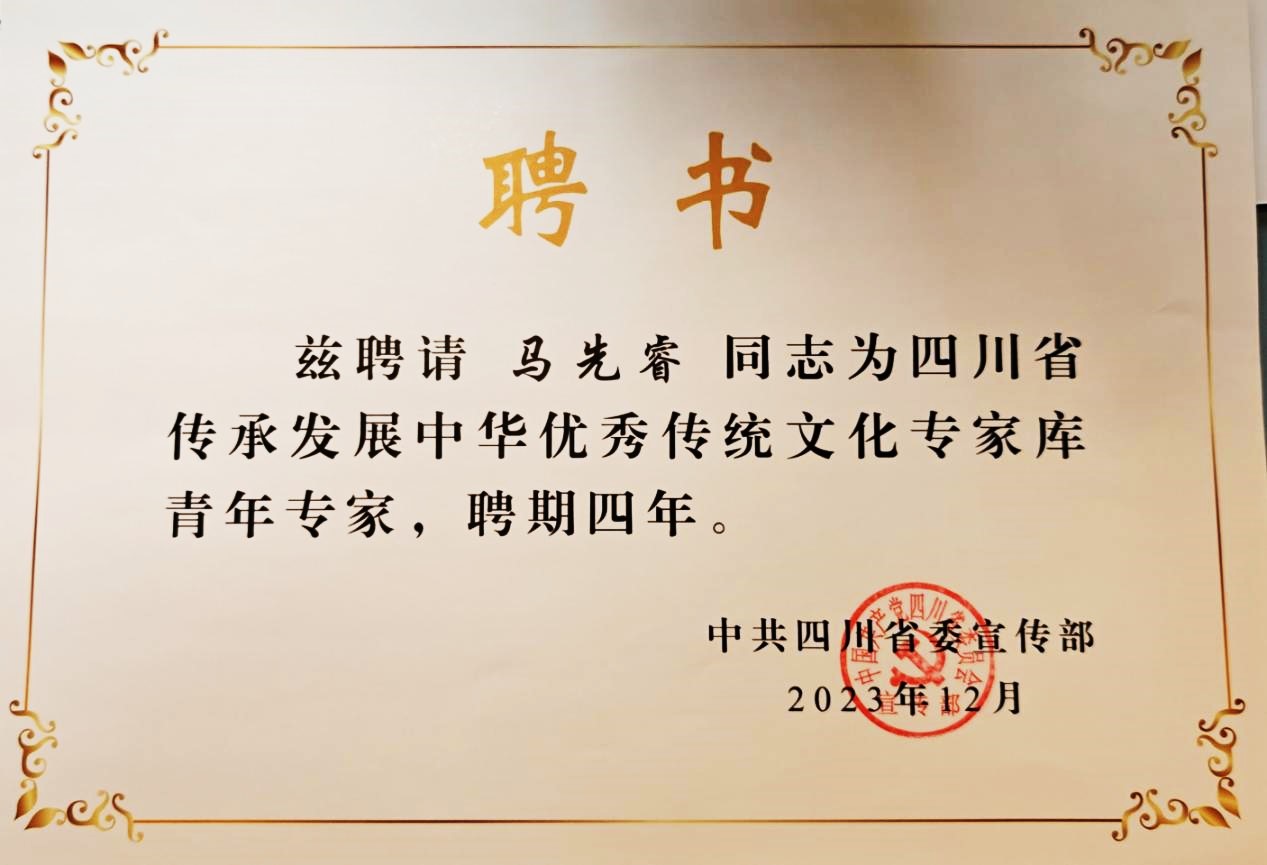 马先睿老师被聘为四川省传承发展中华优秀传统文化专家库青年专家